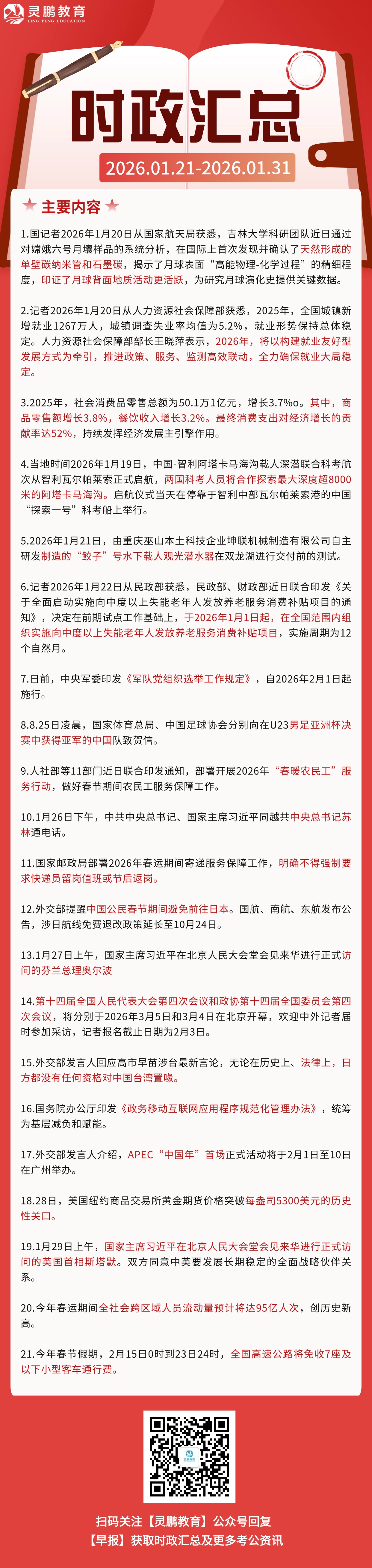 2026年1月时政热点汇总